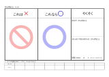 「コラッ!」「ダメ!」「やめなさい!」「何度言ったら分かるの!」…と発達が緩やかなお子さんは「叱られる」場面がとても多いです。でも、この叱るという行為でダメな行為だけではなくて、「次回からはこうしてね!」の提示もしているでしょうか?やって欲しい行動を伝えていないのに、「自分で考えて行為を正しなさい」というのはとても難しいことです。このシートは「××じゃなくて○○しよう」が視覚的に伝わるように作成してみました。今日、「コラッ!」と言ってしまったことを思い出して、明日同じ場面では「○○しよう!」まで伝えて、明後日からは「○○できた!」を誉めていく環境に変わっていってくれればなぁ…と願っています。代替行動分化強化ってやつです。