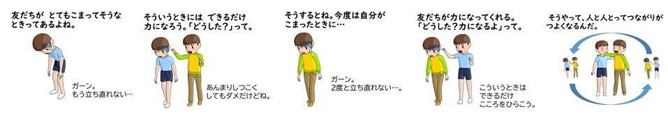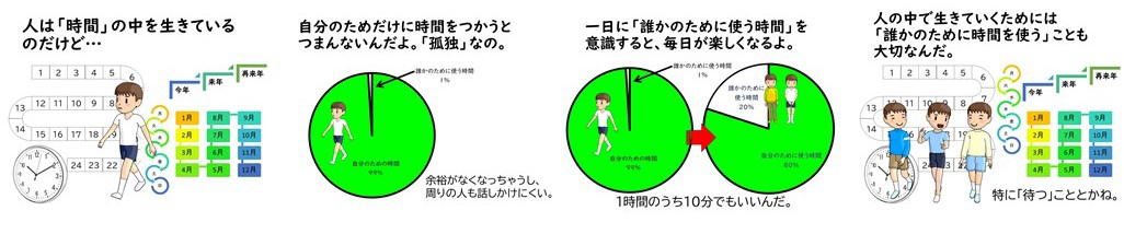 例えば体育や図工・美術など「技能系科目」と呼ばれるモノの技能であったり、国語・算数・理科・社会・英語などのテストの点数や偏差値で表れる知識の伸び等はいわば「外側から見える能力」ですが、教育においては外側からは中々視ることができない、謂わば「成熟」ともいえる「内側の成長」があります。それは、個々人の中で学びが意味付き・価値付き・重み付き、人生においての方向性を伴ったときに一歩進んでいくモノですが、その営みに於いて教師はガードレールのような役割を果たします。子どもが自ら学びを意味づけ、価値づけ、重み付けていくことを支えながら、時に踏み外しそうになる子どもたちの内面の育ちを時に補足するような道徳教材になればと願います。