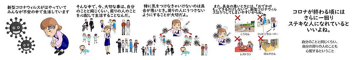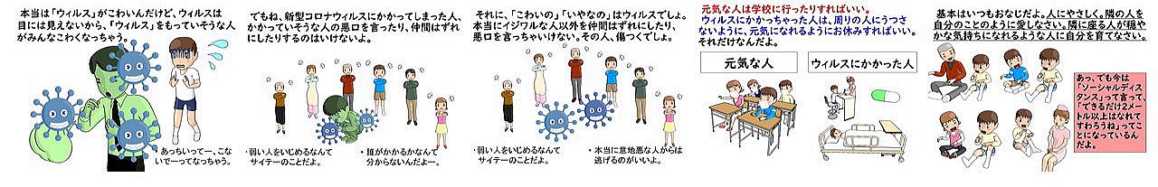 学校の再開に向かっていくに当たり、心配していることがあります。それは「もし、誰かが感染してしまい全校休校などのの措置になってしまったときに、その子、そのご家庭をどうまもれるのか」ということです。現状は、誰がかかるか分からない状況です。でも、感染経路が追えず、市中感染が拡がっているなかで、学校の中にウィルスはいつ入ってきてもおかしくありません。予防的な説明がまず大切、という考えの基に作成をしました。