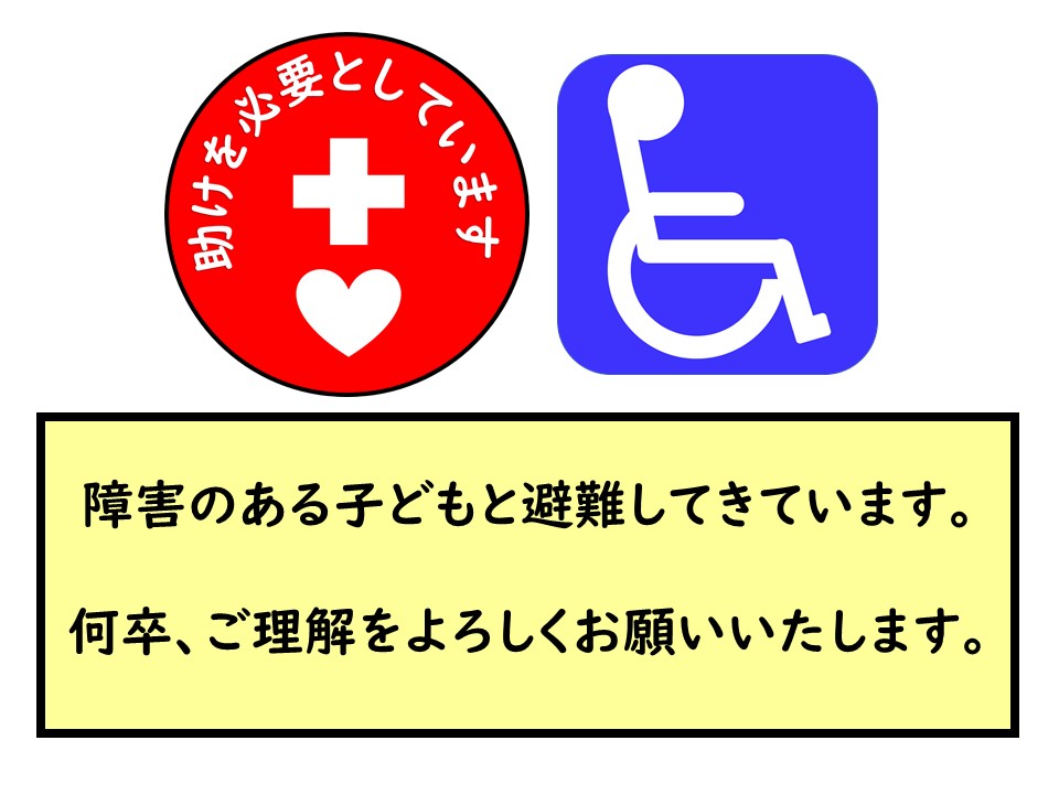 避難所で使用することを想定したカードです。今のところは、車いすシンボルの方がどうしても認知度が高いんですよね…。
