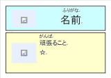 2段目にはワンタッチで写真がはめ込めるようにしてあります。3段目にはドットシールを貼りつけられるようにしてあります(ドットシールは本人に手渡して、本人が貼れるようにしてください)。4段目にはテキストを入れられるようにしてあります。