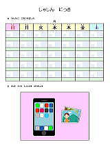 特に自閉スペクトラム症の特性をもつ人は、中枢神経系の統合失調などが原因で、階層性をもった、「昨日→一昨日→一昨昨日→…一週間前→一ヶ月前→…」といった記憶を辿りにくく、「昨日と昨日以外」という記憶の整理のされ方をしている人も多くいると言われています。そこで、写真とカレンダーを対応させた日記を付けていくことで、記憶を整理しやすくしようというプリントを作成しました。