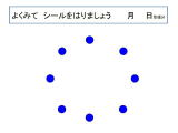 定位課題です。2cmのドットシールをプリントの点をよーく見て、貼って学習します。