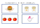 話し言葉を聞いて、絵カードを選び取る段階です。この段階になると、生活の中での姿も大きく変わってきます。