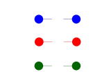 線つなぎと一重に言っても、視覚の使い方が未発達なお子さんは10cm離れた2点を見取ることが難しいこともあります。つまり、市販の線結び教材では距離がありすぎて課題が合わないお子さんがいます。また、視覚には遷移させやすい(移動させやすい)方向と、遷移させにくい方向もあります(→詳しくは親ブログのエントリへ)そこで、線結びの手前教材第一弾として、2点の距離が短く、視線の遷移がし易い横方向への線結び課題を作成しました。また、線結びの一歩先の課題としては「同じものを結ぶ」が待っているために、2点を同一のイラストにして作成しました。