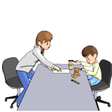 最初の段階は具体物同士のマッチングです。言葉掛けは「○○、ちょうだい」と、大人は物の名前を言って構いませんが、子どもの注目は物への注視に向かうように気をつけて下さい。