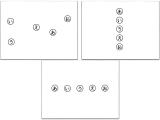 11枚をセットにして1回で取り組んでいく課題です。2点を捉えやすい近い状態での線結びから始めて、だんだんと遠ざかり、タテの視線遷移を少し入れて、最後は「同じものを結ぶ」手前まで迫れるようにしてみました。